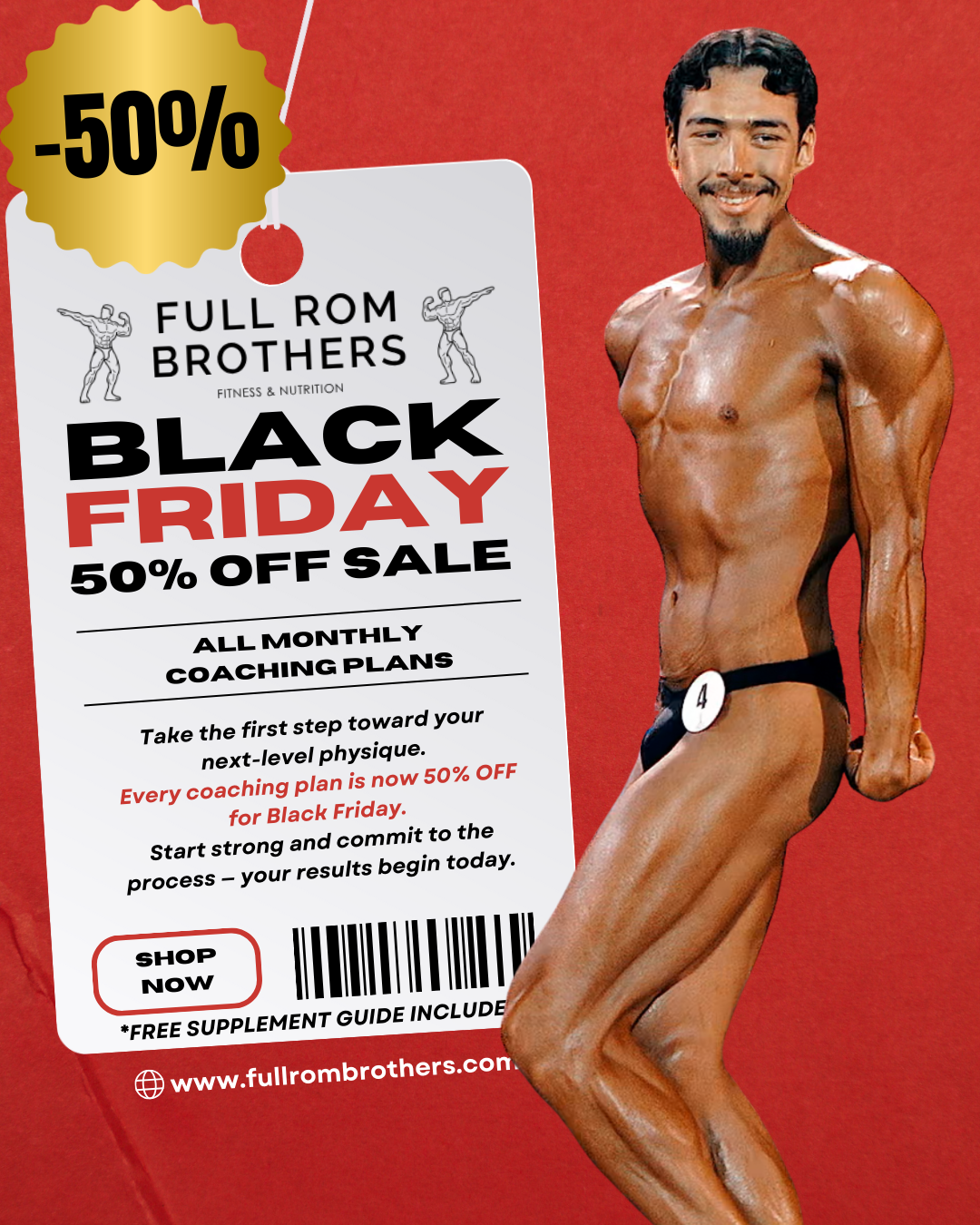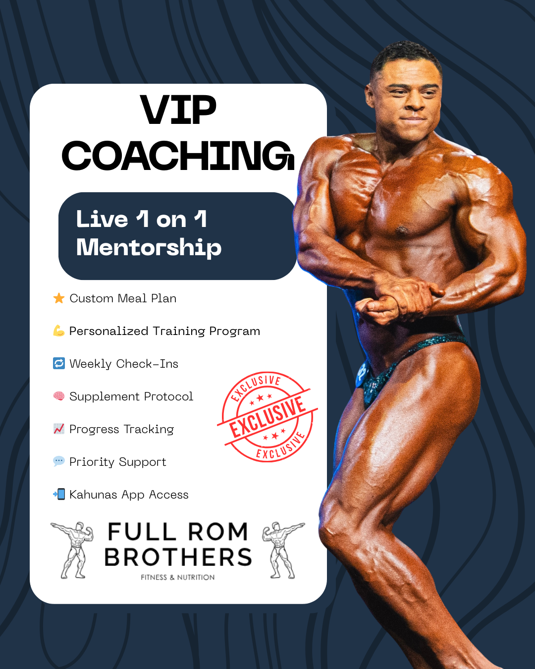 At Full ROM Brothers, we don’t believe in cookie-cutter fitness. Our programs are built from real competitive bodybuilding experience, tailored nutrition strategies, and ongoing accountability to keep you progressing. While others hand out generic plans, we deliver personalized guidance and proven results.